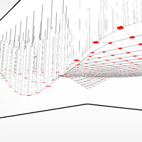 | Concept The Hungarian Pavilion of Shanghai forms a dynamically changing whole, integrating the pavilion's most important part, the Gömböc. The space is constructed by several static, and 800 active, kinetic wooden objects. Custom built software is responsible for the controlling of the moving parts. Factors for defining the shape The ever-changing generative system is an automated "shapeshifter" displaying mathematical algorithms, noise and blocks which can remind the observer to an evolving cityscape. The led lights coming out on the bottom of the hanging poles are turning the whole into a 3d moving surface display. |